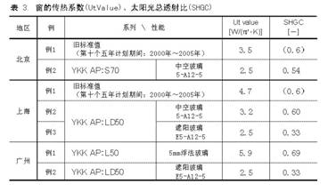 本文以北京、上海、廣州的居住建筑為例,主要從采暖、空調(diào)用電能耗方面,說明了使用高節(jié)能性門窗對于降低建筑采暖、空調(diào)能耗有著顯著效果。并且,通過對不同系列YKK AP門窗進行保溫、隔熱性能的傳熱模擬,以及對不同地區(qū)住宅年耗能量進行的模擬計算,說明了YKK AP門窗對于降低居住建筑采暖、空調(diào)用電能耗具有顯著效果。