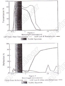 Low-E鍍膜玻璃工作原理分為兩步:首先,由于其膜層的輻射透過范圍在35O~25OOnm之間,使其能夠輕易傳導(dǎo)太陽(yáng)能量;其次,與非鍍膜玻璃長(zhǎng)波輻射不能透過且對(duì)這些波長(zhǎng)的高吸收性及高放射性相比,Low-E鍍膜層能夠極大地增加反射性,同時(shí)大大降低長(zhǎng)波輻射(3~5O微米,也稱為遠(yuǎn)紅外 (IR))的放射