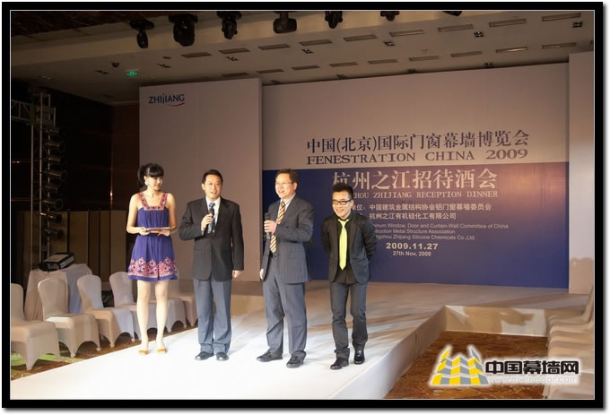 | | 2009年11月27日,中國(北京)國際門窗幕墻博覽會杭州之江有機硅化工有限公司招待酒會在北京歌華開元大酒店國際新聞大廳舉行。中國建筑金屬結構協會姚兵會長、中國建筑金屬結構協會鋁門窗幕墻委員會黃圻主任、中國建筑裝飾協會馬挺貴會長等領導嘉賓出席了此次酒會。