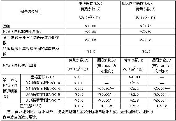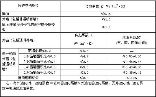 設計標準》對圍護結構有著明確的要求。在這本標準中,根據建筑所處城市的建筑氣候分區,圍護結構的熱工性能應分別符合下列各表的規定。