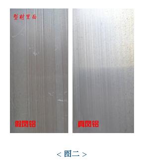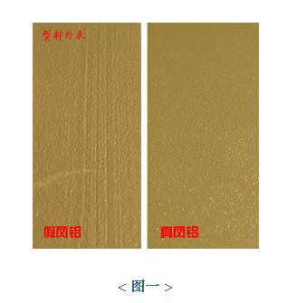 噴涂(常見色有:綠色、白色、灰色),這種處理方式簡單的說,就是將擠壓出來的型材上面做粉末的覆蓋,這種處理方式對垃圾假冒鳳鋁型材有著巨大的優(yōu)勢,可以將擠壓出來型材上的痕紋做有效的掩蓋。但由于造假人員為更多的節(jié)省成本,他們采用低劣粉末,附著年限短,容易脫落,而且覆蓋在型材上的粉末又少又薄,另外擠壓出來的型材痕紋過多過深,就算有了這層粉末的掩蓋,只要從不同角度和型材位置上觀察,還是很容易看到這些難看的痕紋。(如圖一)當(dāng)你定做的鳳鋁鋁材在安裝前,務(wù)必仔細(xì)觀察型材的表面,是否存在痕紋。如果你對表面觀察看不準(zhǔn),你還有權(quán)利要求加工安裝人員將以做好的門窗,拆開一樘,看型材中間內(nèi)壁,型材在做表面噴涂處理時(shí),截面里面是無法噴到的,這樣你看到的也就是沒有被粉末掩蓋的型材本色,這樣就很容易鑒別型材上是否存在痕紋。正宗鳳鋁是不會(huì)出現(xiàn)任何一條痕紋的。我們推薦你查看時(shí),要求加工安裝人員拆開你指定的一樘觀察,在沒有顏色粉末表面觀察,就能很輕松的鑒別拉!(如圖二)