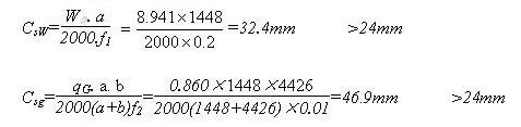 4. 水平倒掛的隱框、半隱框玻璃和鋁框之間硅酮結(jié)構(gòu)密封膠的粘接寬度計(jì)算: