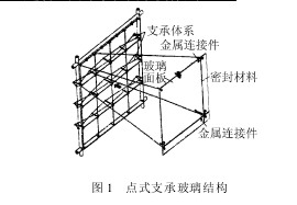 點式支承玻璃建筑是一種新型的建筑形式(圖1),它把玻璃和建筑的主體結(jié)構(gòu)通過金屬連接件組合在一起,共同承受外荷載作用[1]。