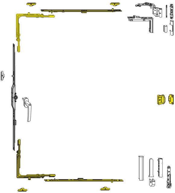 注:黃色部件的選配與型材有關。