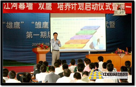 2009年5月28日—31日,為期四天的江河幕墻“雙鷹”培養(yǎng)計劃啟動儀式暨第一期后備人才培訓(xùn)班圓滿結(jié)束。本次培訓(xùn),是江河幕墻“雙鷹”人才培養(yǎng)計劃啟動以來組織的首次培訓(xùn),來自江河幕墻環(huán)渤海區(qū)、長三角區(qū)、泛東南亞區(qū),以及中東地區(qū)的近200名“雄鷹”和“雛鷹”參加了培訓(xùn)。