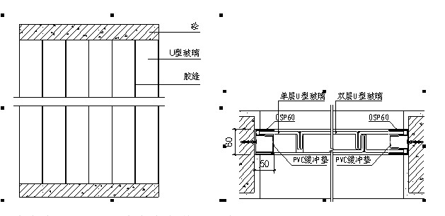 雙層安裝U型玻璃(等于兩片6MM的玻璃加上一個35MM厚的空氣層)其傳熱系數為2.8W/(M2.K),及相當于240MM厚的粘土磚墻。