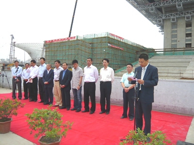 在祝賀中國館國家館外立面綜合試制試驗成功,正式