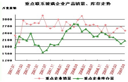 圖2 2007年以來全國重點聯系玻璃企業的銷量及庫存情況