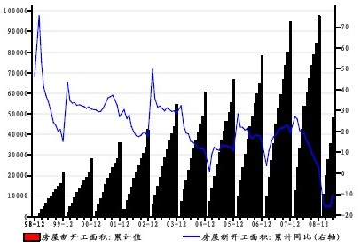圖5 全國商品房新開工面積(累計數)及同比增速變化