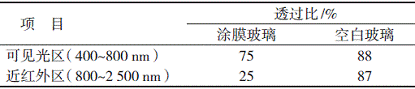 可見光和近紅外(400~2500nm)范圍內的誘射光譜,與空白玻璃作比較,結果見表2,