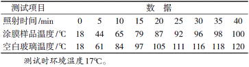 表3涂膜樣品與空白玻璃在相同條件下測試的溫度