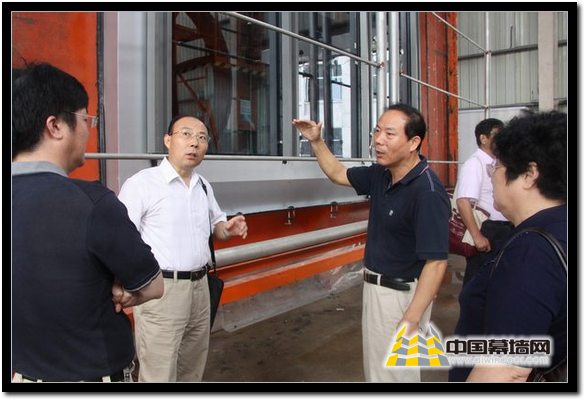國家檢測中心幕墻部主任王洪濤(右一)在試驗現場