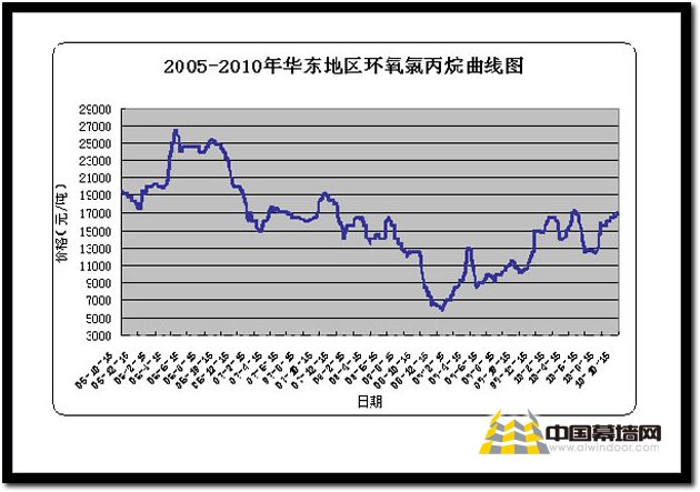 【中國幕墻網10月21日消息】2010年我國環氧氯丙烷市場的走勢出現了強烈的波動態勢,4、6兩個月環氧氯丙烷經歷了市場的洗禮,兩次走低,但在資本運作的引導下,7月后環氧氯丙烷市場行情開始爬升,到10月15日左右到達2010年的價格最高值17000元,可謂是金融危機后的新高。