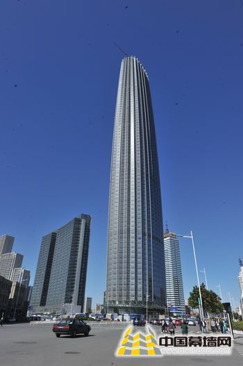 據了解,津塔寫字樓的玻璃幕墻已經安裝至地上75層,正在安裝采光頂的平頂玻璃。除平頂玻璃之外,建筑高度為12米的大堂和雨棚玻璃亦正在安裝,預計11月中旬津塔寫字樓的玻璃幕墻將全部封閉。