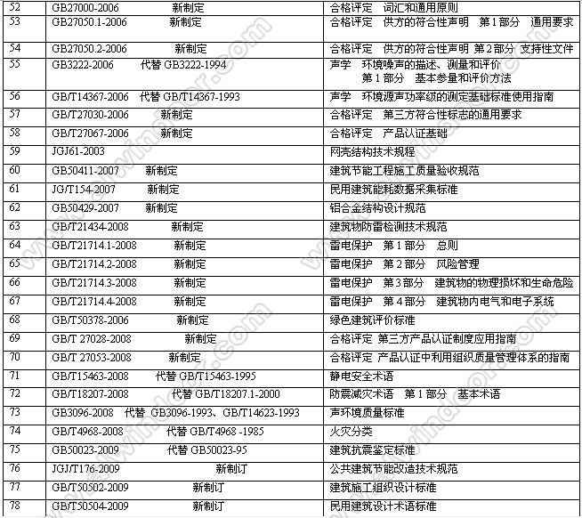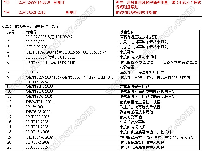 幕墻門窗行業國家標準、技術規范 (2010年9月30日止)