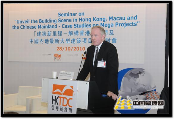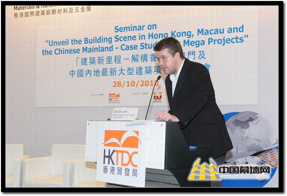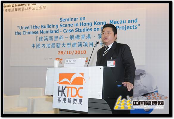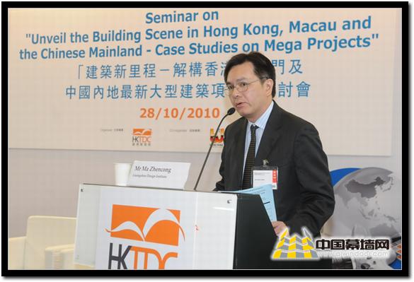由香港貿發局主辦的2010香港國際建筑裝飾材料及五金展于10月27日在香港亞洲國際博覽中心隆重舉行。10月28日下午,“建筑新里程—結構香港、澳門及中國內地最大型建筑項目”研討會在亞洲國際展覽館6號展覽館研討室舉行。參加研討會的講者有劉榮廣伍振民建筑師事務所(香港)有限公司助理董事亞歷山大魯殊先生、恒基兆業地產有限公司地產策劃(一)部總經理鄧明庚先生、廣州市設計院副院長及總建筑師馬震聰先生,以及蘇國良大律師辦事處、香港執業大律師蘇國良先生。