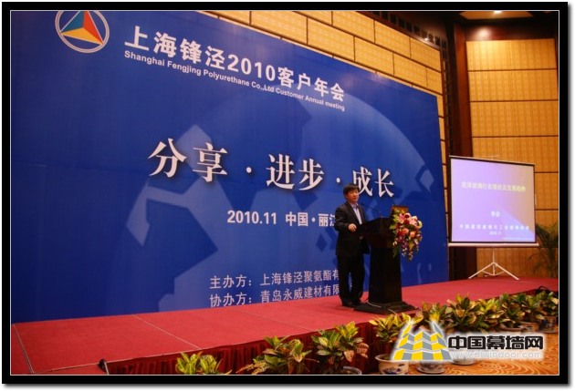 【中國幕墻網11月22日消息】為期四天的上海鋒涇2010客戶年會在圓滿完成了各項議程后,于11月16日晚在古城麗江降下了帷幕。本屆年會由上海鋒涇聚氨酯有限公司主辦,青島永威建材有限公司協辦。會議主題為——“分享•進步•成長”,吸引了包括中國建筑金屬結構協會、中國建筑裝飾協會、中國建筑玻璃與工業玻璃協會,青島膠州市市委領導和全國各地的鋒涇經銷商等近200余位嘉賓參加了會議。