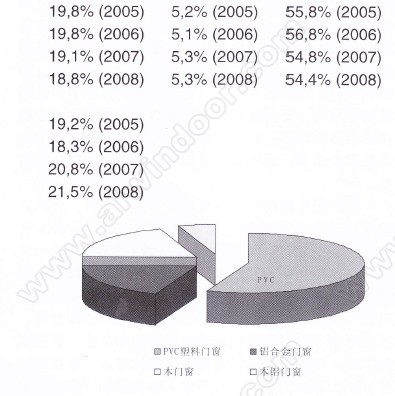 另據權威機構統計,全球塑料門窗市場的占有率達22%(2008年),其中: 歐洲>40% 美國>45% 德國>54% 俄羅斯>50%