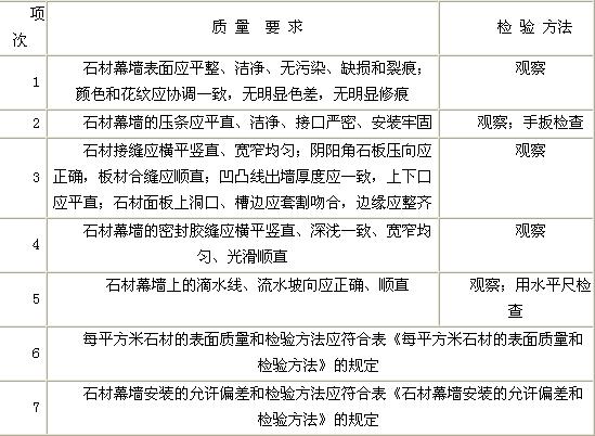 【中國幕墻網 02月02日消息】建筑高度不大于100m、抗震設防烈度不大于8度的天然石材幕墻工程,按以下規定進行質量驗收。