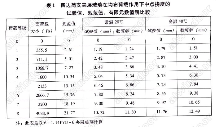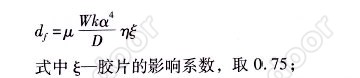 對夾層玻璃的計算公式進行修改時,必須考慮各種因數的影響。本文中,取高溫下膠片的材料特性代入數值模擬中,并且通過大量的不同規格、不同厚度的夾層玻璃的有限元數值模擬分析比較,在試驗數據的基礎上,并適當考慮工程設計安全度的要求,得到如下關于夾層玻璃的規范修正公式計算公式:
