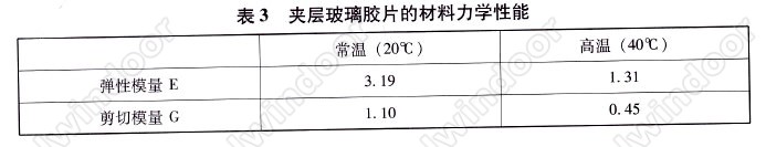 (2)給出在進行夾層玻璃數值模擬時,PVB膠片的材料性能,如表3所示?晒⿵V大設計捋在數值模擬時參考。