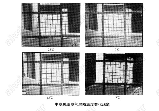 腔體內的氣體,在每天的溫度變化時,每天都會出現不同的變化現象。尤其明顯的是會出現中空玻璃中間空氣層變化大約0.1mm。