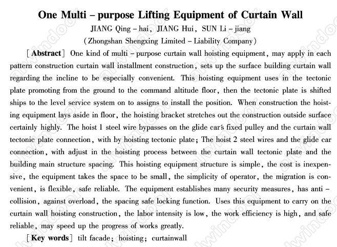 主體結(jié)構(gòu)上根本無法安裝吊裝架c這就需要采取其它辦法來解決幕墻板塊的豎直吊裝問題,本文提及的多功能吊裝設(shè)各可方便解決這一難題。