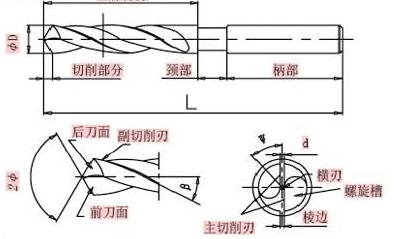 2.麻花鉆的基本形狀和結構并沒有太大的改變(見圖1)。