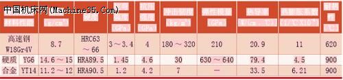 表1 高速鋼和硬質合金材料的物理力學性能