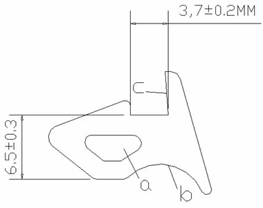 c處的一個內(nèi)斜邊在安裝后能使密封膠條和鋁型材更好的接觸,保證密封(水密性,氣密性)的作用;