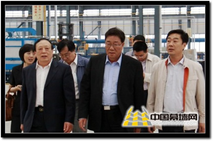 山東華建鋁業董事長吳維光陪同姚會長一行參觀生產車間
