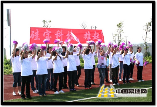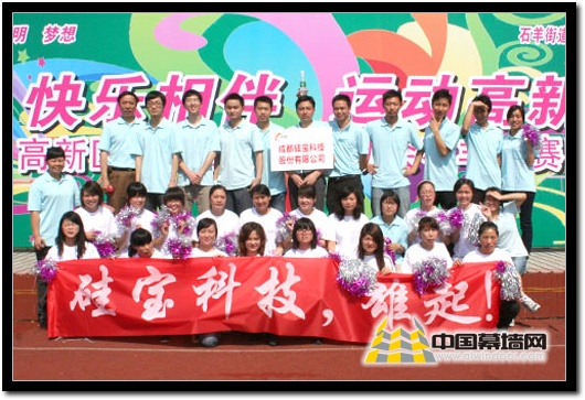 【中國幕墻網 06月01日消息 】2010年5月22日,由高新區機關工委、社會事業局牽頭舉辦的“青春·文明·夢想”趣味運動會在成都高新區大源學校運動場上隆重開幕,吸引了來自高新區高校、企業、政府部門共30個單位的上千名男女白領,硅寶科技30多名員工在公司工會的組織下也踴躍參加了此次賽事。