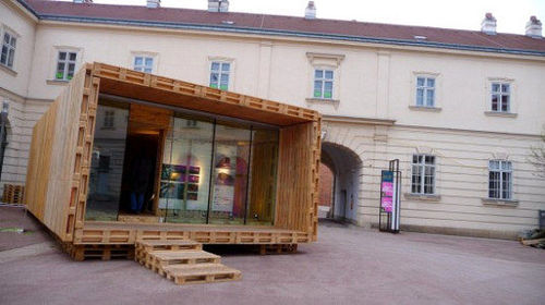 早在2008年,安德烈亞斯·克勞斯·施內策爾和格里高爾·帕爾斯就帶著他們設計的“Paletten Haus”住宅參加了高迪設計競賽,該大賽的目標是尋求二十一世紀造價最低的休閑屋。兩位設計者的板房在大賽上出盡了風頭,接著又在在歐洲各地巡回展覽,包括格勒諾布爾、威尼斯、維也納、林茨和布魯塞爾。后來,設計師還贏得2009年皮拉內西學生佳作獎。