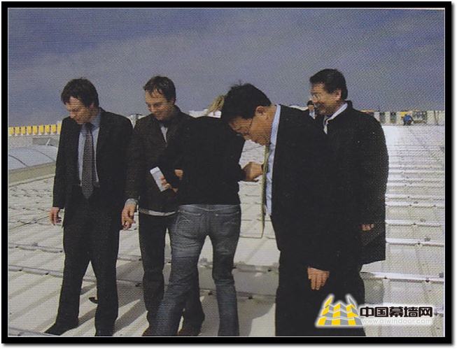 板帶領(lǐng)考察團(tuán)登上屋頂,觀看了施工現(xiàn)場(chǎng)。