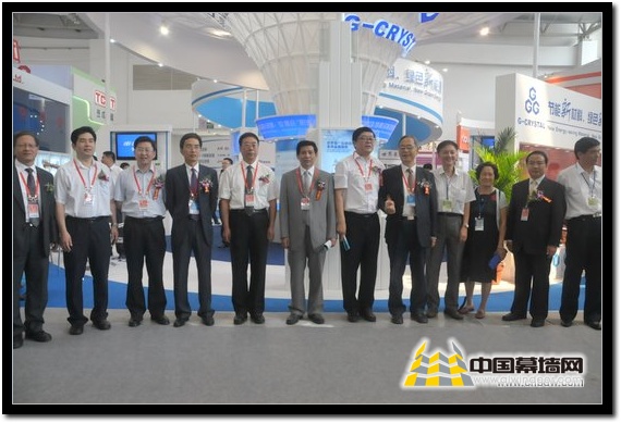 與會領導和嘉賓在金晶玻璃展位參觀合影