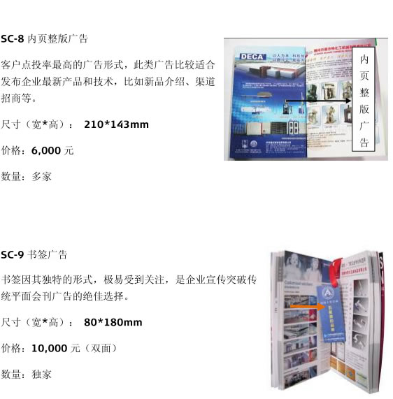 會(huì)刊是展覽會(huì)成功舉辦的重要組成部分之一,在展會(huì)期間及會(huì)后成為專業(yè)買家最具價(jià)值的采購指南、各行業(yè)組織與協(xié)會(huì)最新行情的信息來源、各國駐華使館最具影響的貿(mào)易參考;因此,從長遠(yuǎn)利益出發(fā),充分利用會(huì)刊的長期宣傳作用,投放廣告,是一項(xiàng)低成本、高時(shí)效的宣傳方式!