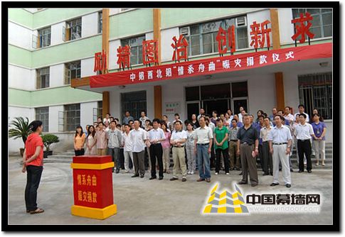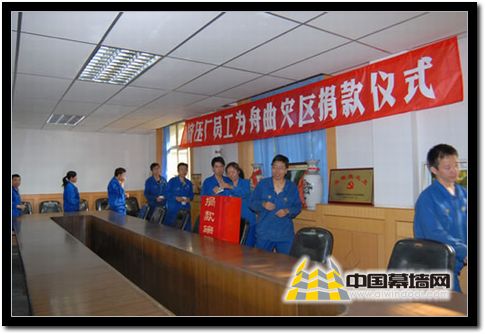 【中國幕墻網8月20日消息】8月8日凌晨,甘南舟曲縣特大山洪泥石流災害發生后,受災群眾深深牽動著西北鋁全體干部職工的心。一方有難,八方支援,西北鋁干部職工紛紛捐款,表達對舟曲災區人民的關愛之情,為支援災區群眾重建家園,渡過難關獻出了自己的愛心。