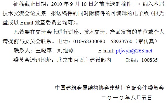 來源:中國門窗&配套材料網收集整理 作者:* 日期:2010-8-31 頁面功能【字體:大 中 小】【打印】【投稿】【評論】 |