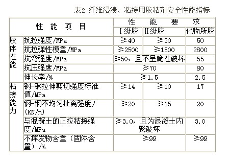 中科院大連化物所開發的專供橋梁用碳纖維膠,其性能列見表2。