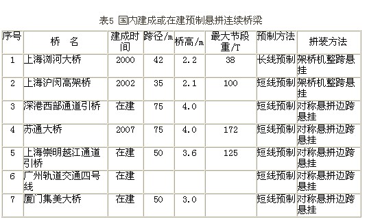 馬來西亞和印尼援建兩座新橋,采用節段拼裝法。可預見海外市場也會不斷擴大。這些都會使橋梁用結構膠在今后有飛速發展。表5列出近期我國拼裝法施工的部分新建橋