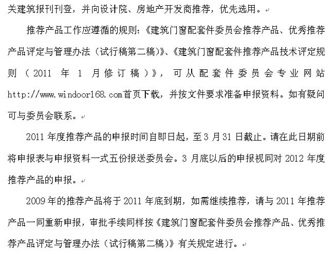 關于開展建筑門窗配套件2011年推薦產品工作的通知