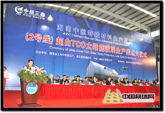 2011年1月24日, 中航三鑫股份有限公司所屬海南中航特玻材料有限公司高端玻璃生產基地2號線——日產600噸超白TCO