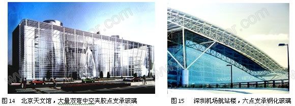 1995年第一個(gè)點(diǎn)支幕墻工程——深圳康佳展覽館建成,為許多大型公共建筑的玻璃幕墻應(yīng)用打開了技術(shù)之門(詞條“門”由行業(yè)大百科提供)(圖12~圖15)。