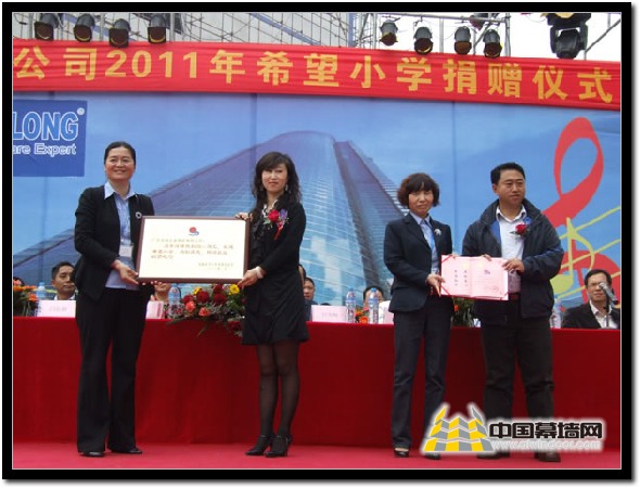 【中國幕墻網】2011年3月12日下午,江西省萍鄉市湘東區廣寒寨堅朗希望小學及青海省大通回族土族自治縣石山鄉堅朗希望小學捐贈儀式在廣東堅朗五金制品有限公司東莞駐地舉行。此次捐贈體現了堅朗公司長期以來對貧困地區教育事業的關注,期盼放飛每一位貧困孩童渴求知識的夢想,再次用實際行動表明企業的責任擔當!據悉此次捐贈的兩所小學為堅朗公司近5年以來累計捐贈的第9、第10所學校。【完】