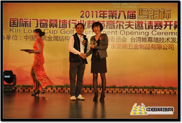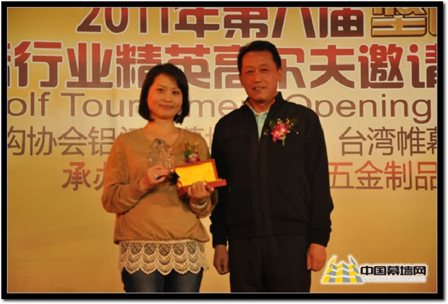 中國建筑金屬結(jié)構(gòu)協(xié)會副秘書長兼鋁門窗幕墻委員會主任 黃圻 先生為女子組冠軍:繆妙頒獎 總桿數(shù) 85桿