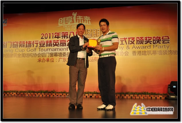 廣東堅(jiān)朗五金制品有限公司總裁 白寶鯤 先生為總桿冠軍:潘高林頒獎 總桿數(shù) 74桿