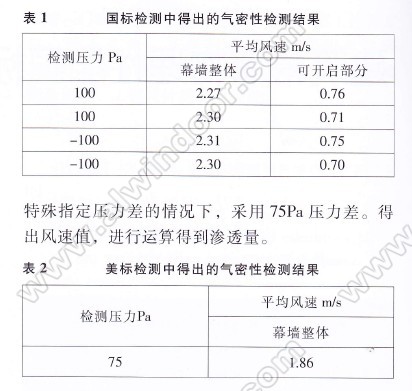 氣密性能檢測,主要檢測出來的數(shù)據(jù)是風速值,再代人計算,這一點兩者是一致的。值得一提的是,在美標中注明的樣品描述中,特別提出需要描述鎖定和操作機理;玻璃的安裝方法;