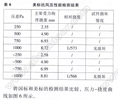 表6為要求撓度曲線的測試結果,因為設計值為1000Pa,故分250Pa一級進行加載。