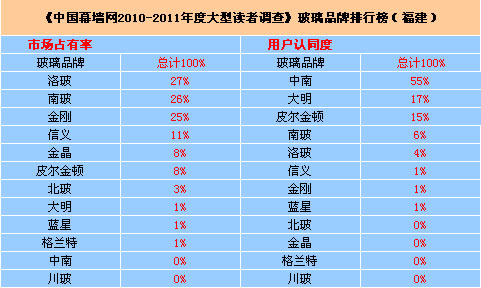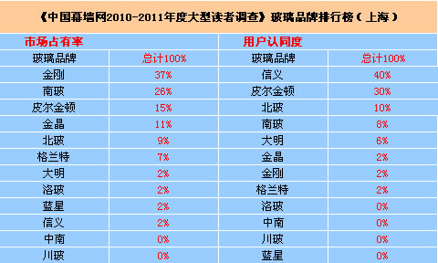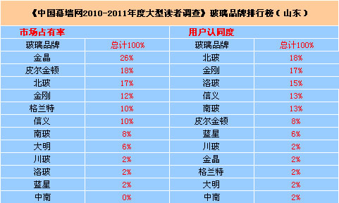 [點擊下載] 《中國幕墻網2010-2011年度大型讀者調查》玻璃品牌排行榜.xls