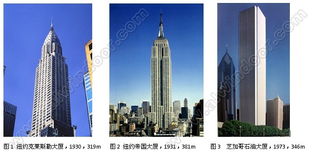 巖石(詞條“巖石”由行業大百科提供)材幕墻高度達319m(圖1)。1931年,帝國大廈的花崗巖幕墻高度達381m,至今這個石材幕墻的最大高度已經保持了70年(圖2)。此后40年間,正值第二次世界大戰和戰后經濟恢復時期,超過300m的石材幕墻沒有再建過。